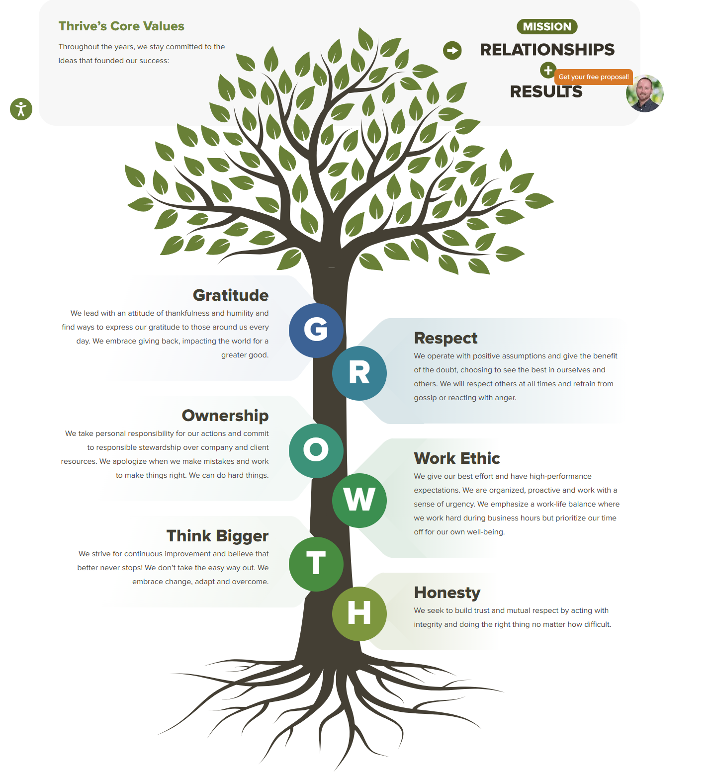Thrive’s success is deeply rooted in its culture and values. We maintain a strong company culture built on our core values to ensure our clients and employees are satisfied with their growth.